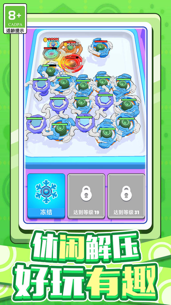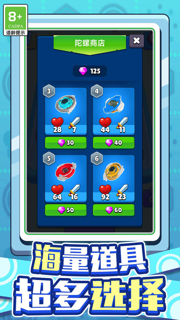 3、从朴素的基础陀螺到炫酷的顶级陀螺,视觉和速度的显著变化带来持续的正反馈激励。